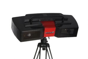 Profesionální 3D skener využívající strukturované bílé světlo pro přesné bezkontaktní snímání.
